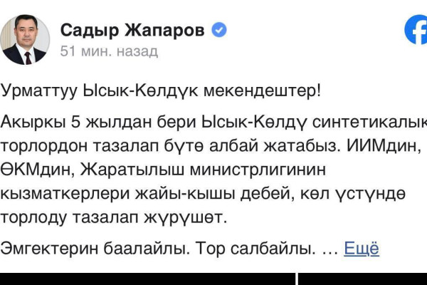 Президент балык уулоочу торлорду ыктыярдуу түрдө өткөрүүгө чакырды